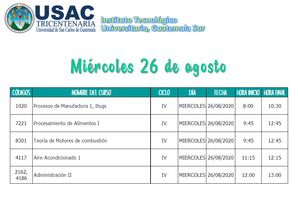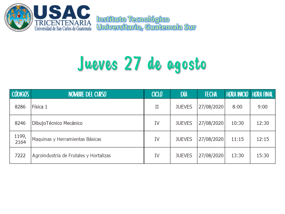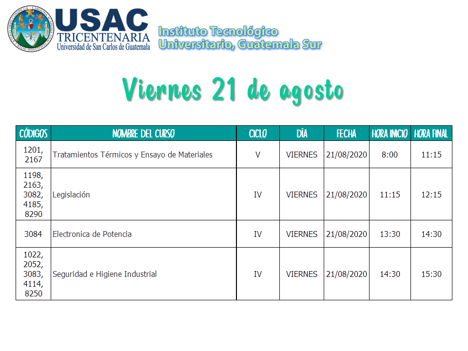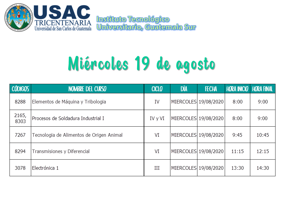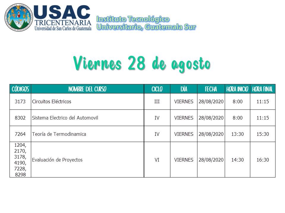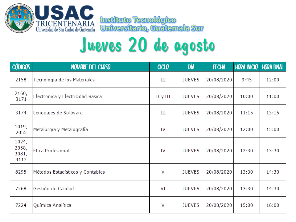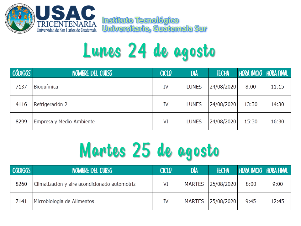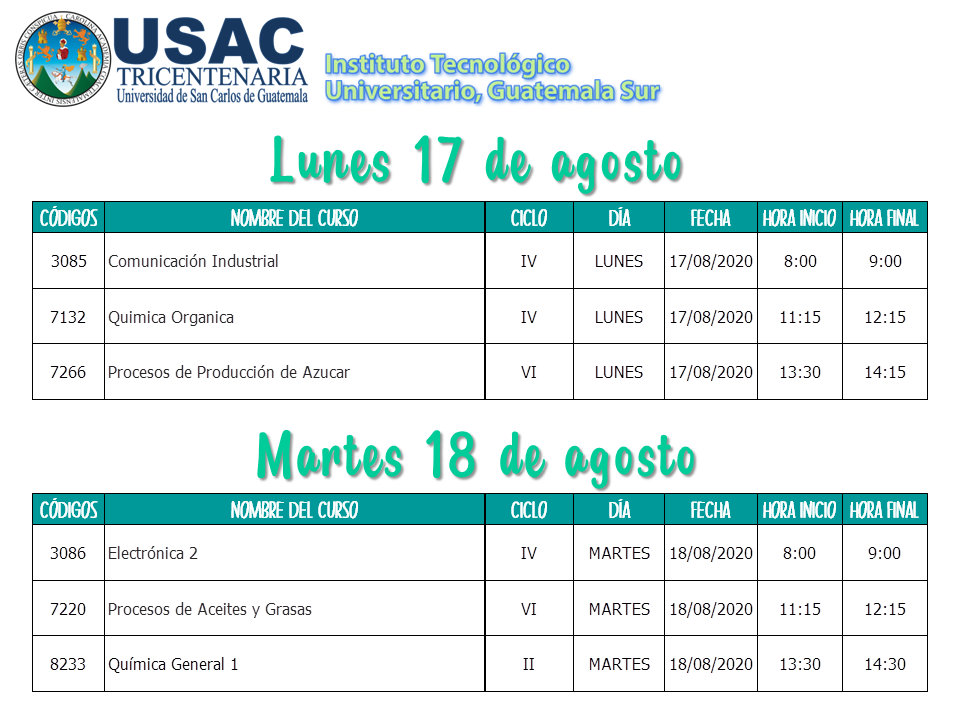 Calendario de Primeros Exámenes Parciales II Semestre 2020 / 2do Semestre 2020, Sin categoría / Por Marlenny Maldonado